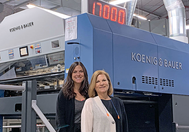 • (Left to right) Samara Ronkowitz, director of sales and marketing at Accurate Box; and Lisa Hirsh, president and CEO of Accurate Box; feel that the new Koenig & Bauer Rapida 164 seven-color printing press increases production, throughput, and adds the most advanced printing technology in the industry to their facility in Paterson, NJ